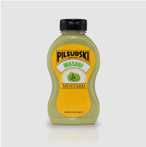 Take your mouthwatering burgers and sandwiches to a whole new level with the help of Pilsudski's wasabi squeeze mustard! This gourmet mustard from Sinking Spring, Pennsylvania blends premium mustard seed with the heat of spicy, zesty wasabi, giving it depth and a distinct flavor profile without being too overpowering. Drizzle atop your signature burgers and hot dogs, or use to create sauces, perfect for coating your sea scallops or salmon fillets. You can also use this mustard in salad dressings to offer a signature Asian-inspired salad! Customers won't be able to get enough of the award-winning flavor this premium condiment will add to your foods.